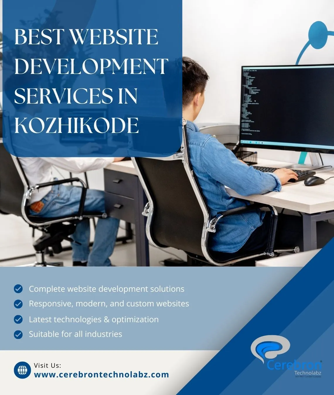 When it comes to developing a website, many of them may lack sufficient knowledge about it; we realize this, and that's why you are here! Cerebron Technolabz in Kozhikode can assist you in resolving any issues you may have and will discover the best solution for your website development needs. The effort involved in creating a website for the Internet is known as website development. Our website development can extend from developing a personalized and attractive website with complicated web apps, digital enterprises, and social apps with innovative technologies.
